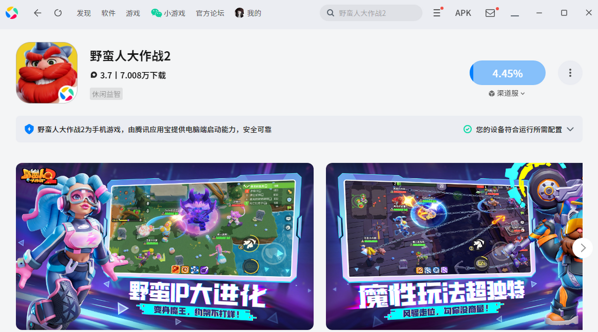 在万家下载站下载最新安装包,按提示安装应用宝(已安装会直接调用打开,未安装应用宝时,手机APP无法独立在电脑上运行),应用宝启动后会下载安装游戏,待安装完成后即可开始畅玩。
