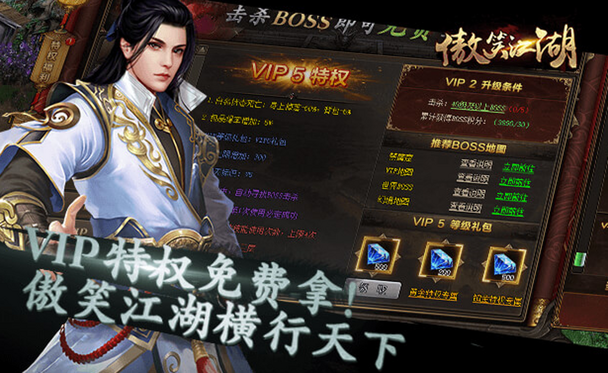 《傲笑江湖》是一款以挑战BOSS和PK为主的畅爽ARPG游戏。在这里努力击杀BOSS即可获得一切,公平、绿色堪称业界良心 。