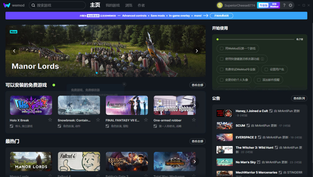 WeMod是一款PC单机游戏修改程序,修改器,Mods以及更多,全部都集成在WeMod程序中,包括修改状态保存、APP遥控、自定义修改。WeMod修改器支持超过*3,000+*单机游戏,WeMod 让修改器作者与百万玩家分享他们的修改器模组。