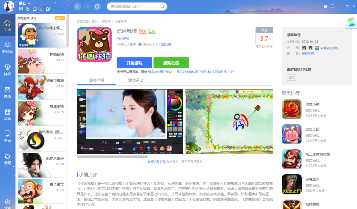 《你画我猜》是一款以画和猜为主要玩法的多人互动游戏,玩法简单、老少皆宜。它主要锻炼人们的想象力与大脑的图文转换能力。在游戏中您可以和不同的玩家进行互动娱乐,将拿到的题目,用画画的形式表达给其他玩家,或者去猜测其他玩家所画的题目是什么。让您在整个竞猜过程中更容易与玩家互动和交流,从而体验到刺激、欢乐的游戏乐趣。看着那一张张匪夷所思的图画,往往公布答案后,大家又会恍然大悟,这就是《你画我猜》的魅力。千奇百怪的画,搞怪爆笑的答案,《你画我猜》总能戳中你的笑点。