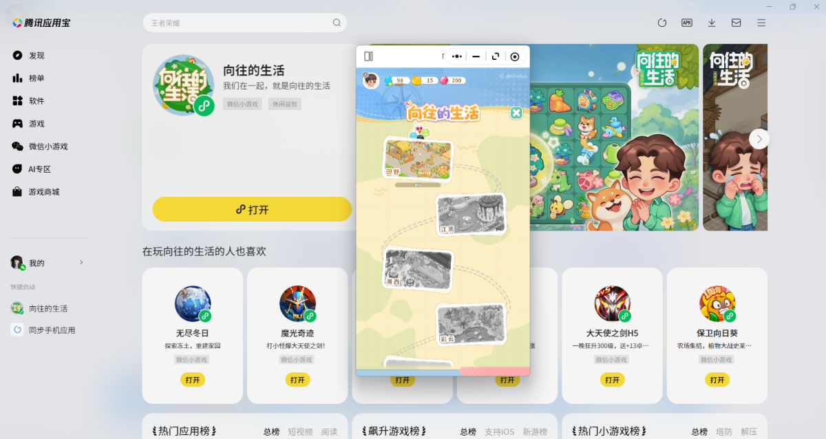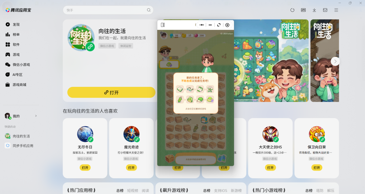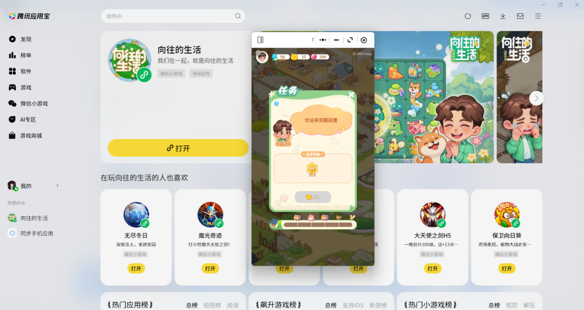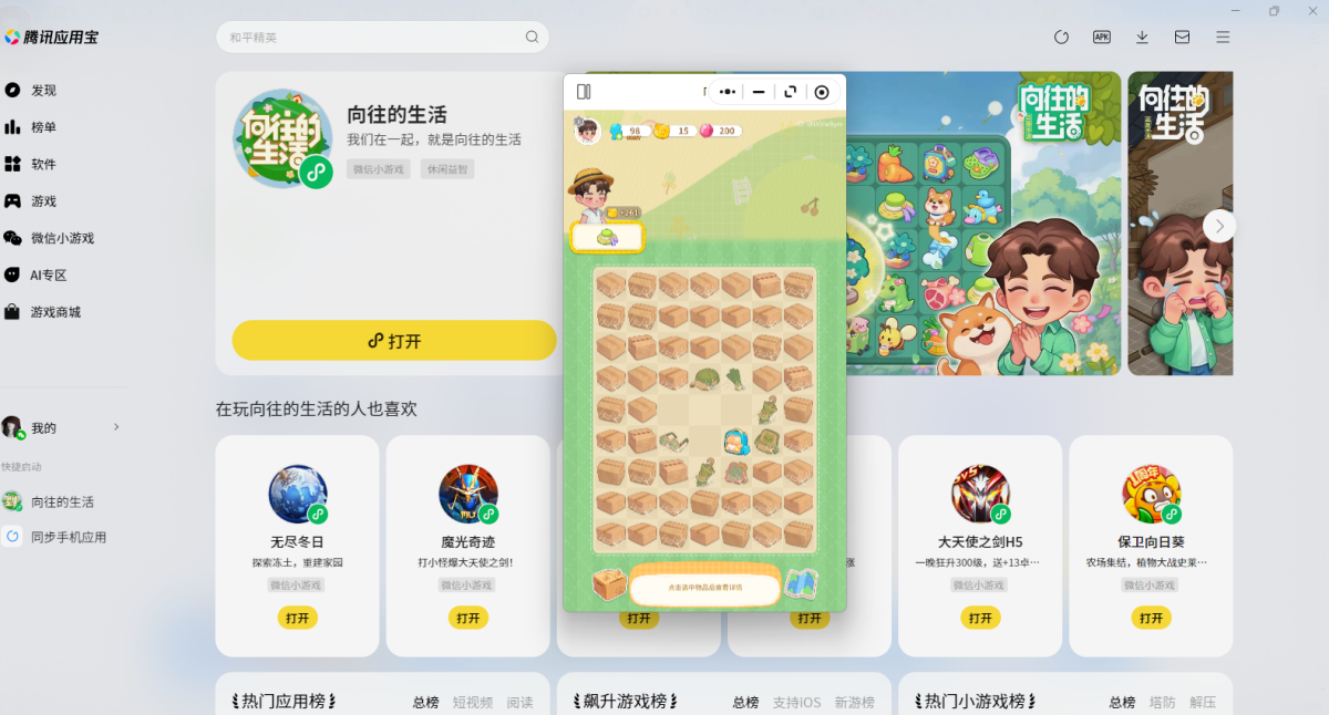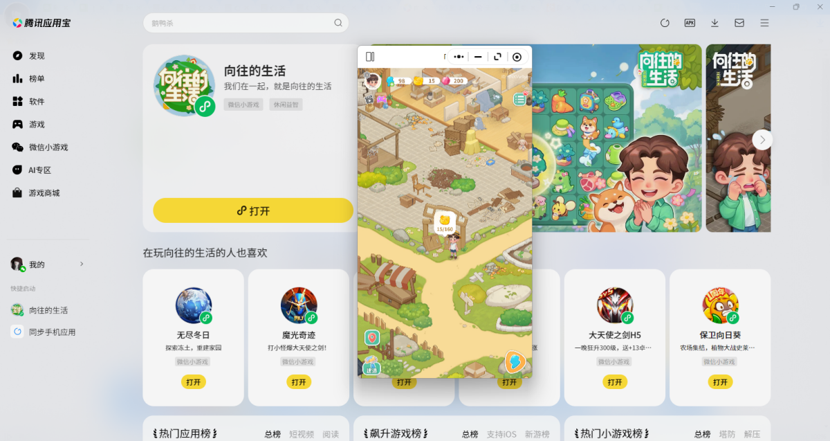 第三步:登录后直接拉起【向往的生活】微信小游戏,就可以畅玩了