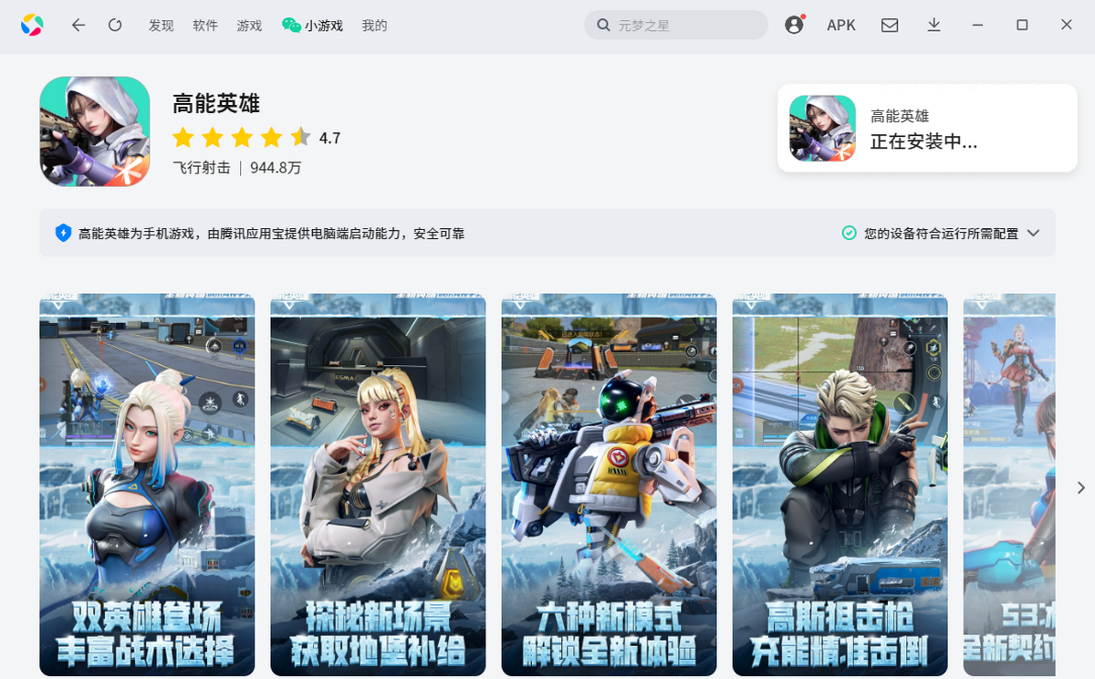 在万家下载站下载最新安装包,按提示先安装应用宝电脑版(已安装会直接调用打开,未安装应用宝时,手机APP无法独立在电脑上运行),然后在应用宝里安装高能英雄手游,安装好后,直接打开登录就能玩了。