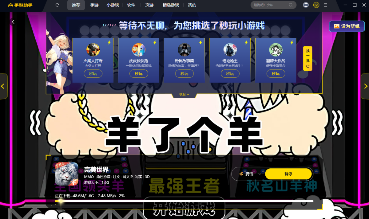 在万家下载站下载最新安装包,按提示先安装应用宝电脑版(已安装会直接调用打开,未安装应用宝时,手机APP无法独立在电脑上运行),应用宝安装完成后,进入应用宝,继续等待游戏安装,完成之后登录账户即可开始游戏