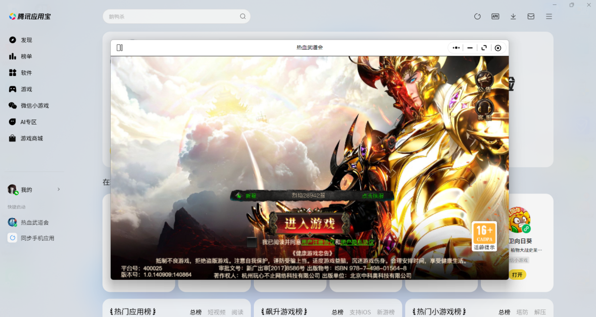 第二步:应用宝电脑版打开后会直接调起游戏,选择微信扫码或其他方式登录账号