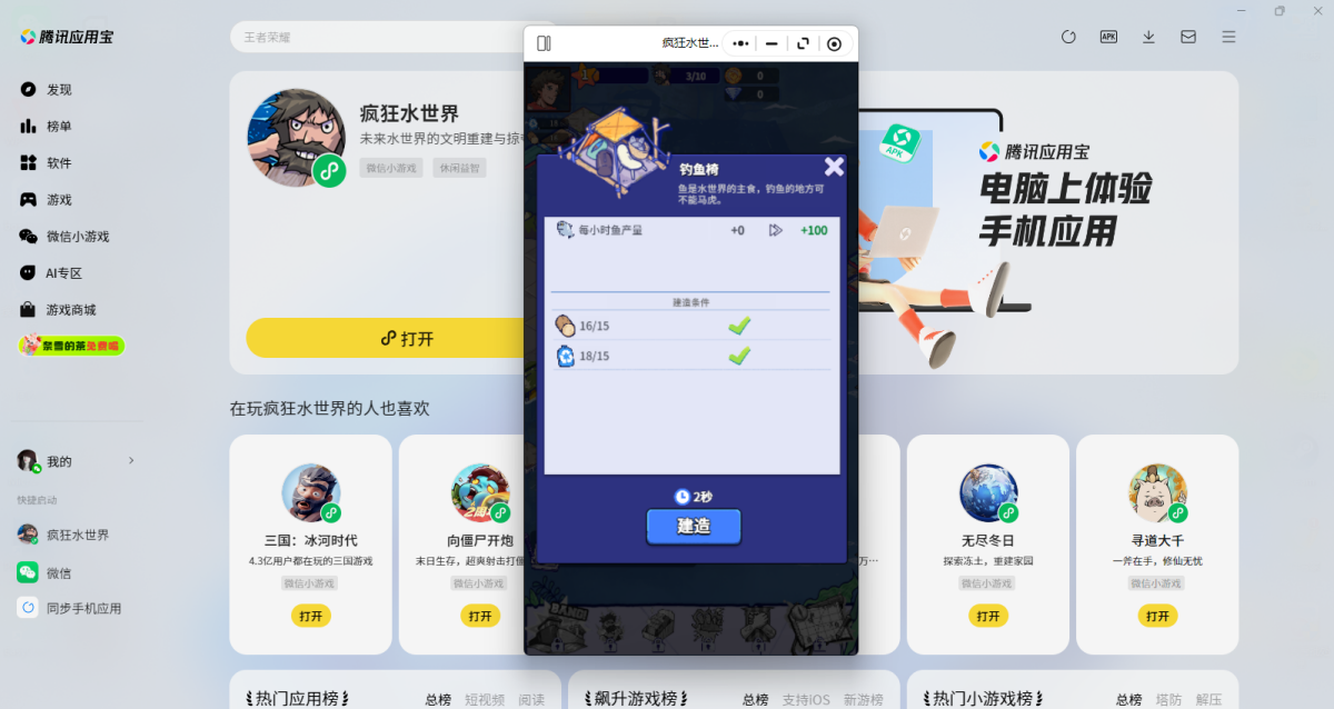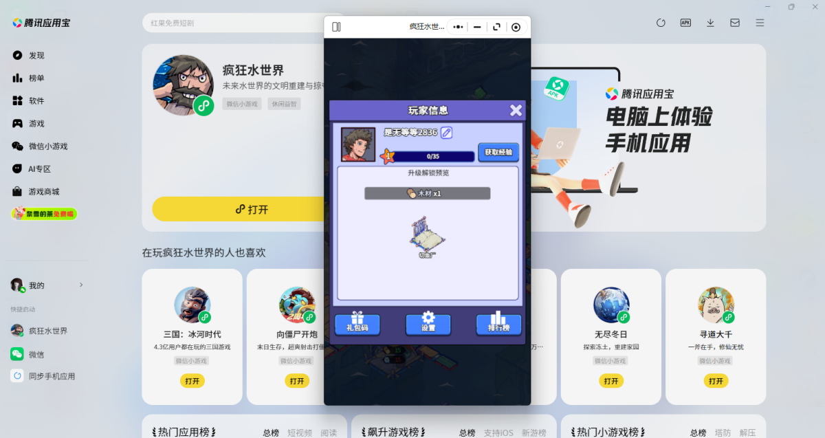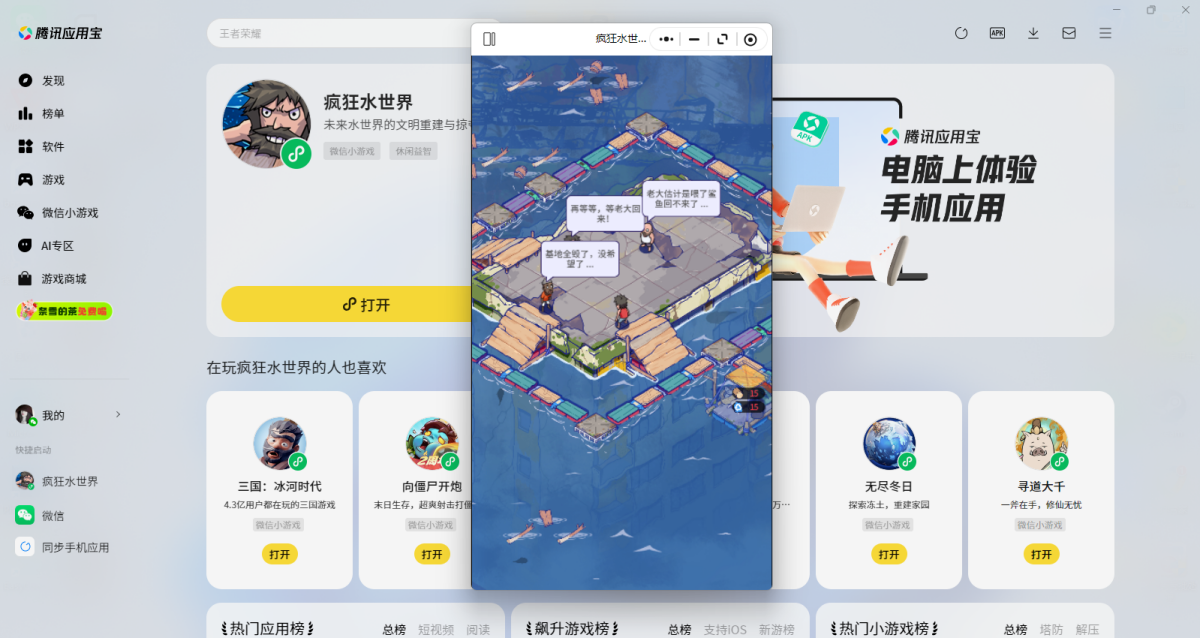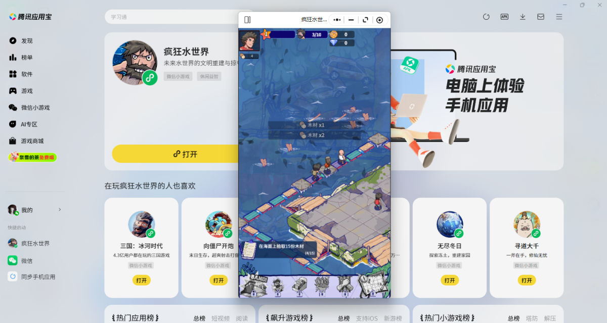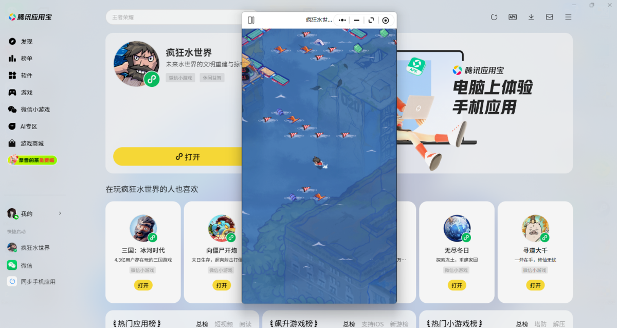 第三步:登录后直接拉起【疯狂水世界】微信小游戏,就可以畅玩了