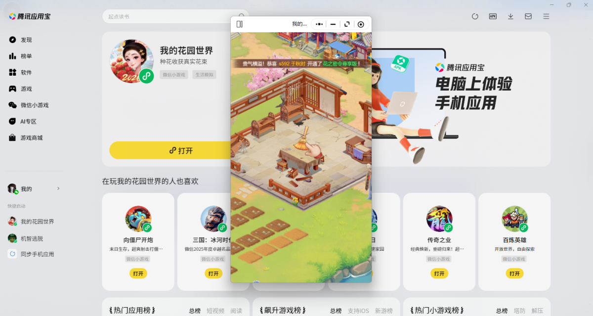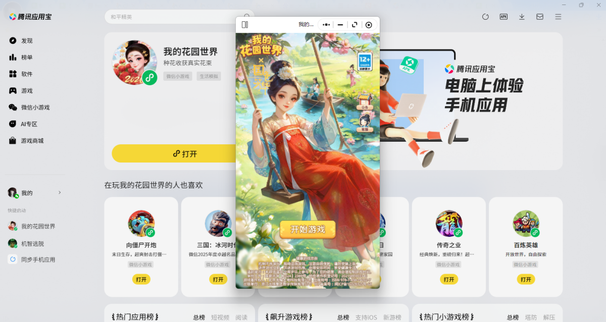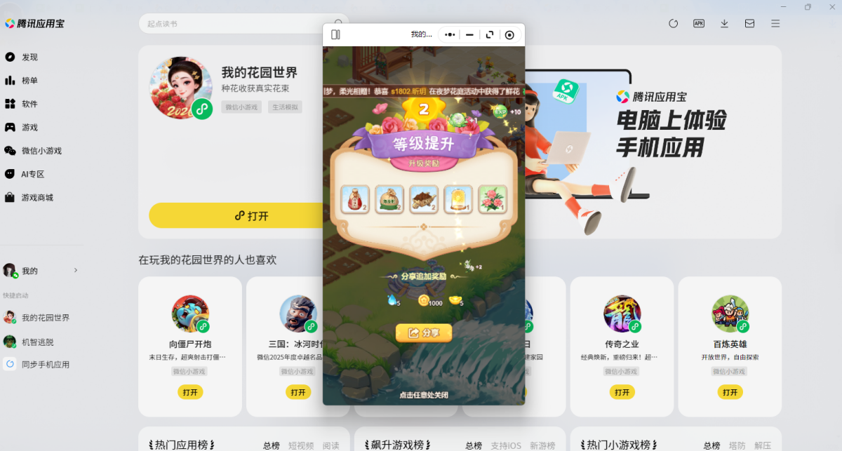 第三步:登录后直接拉起【我的花园世界】微信小游戏,就可以畅玩了