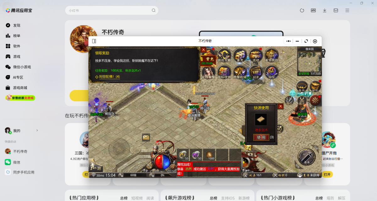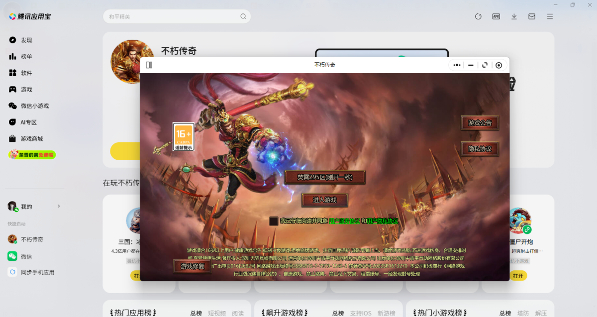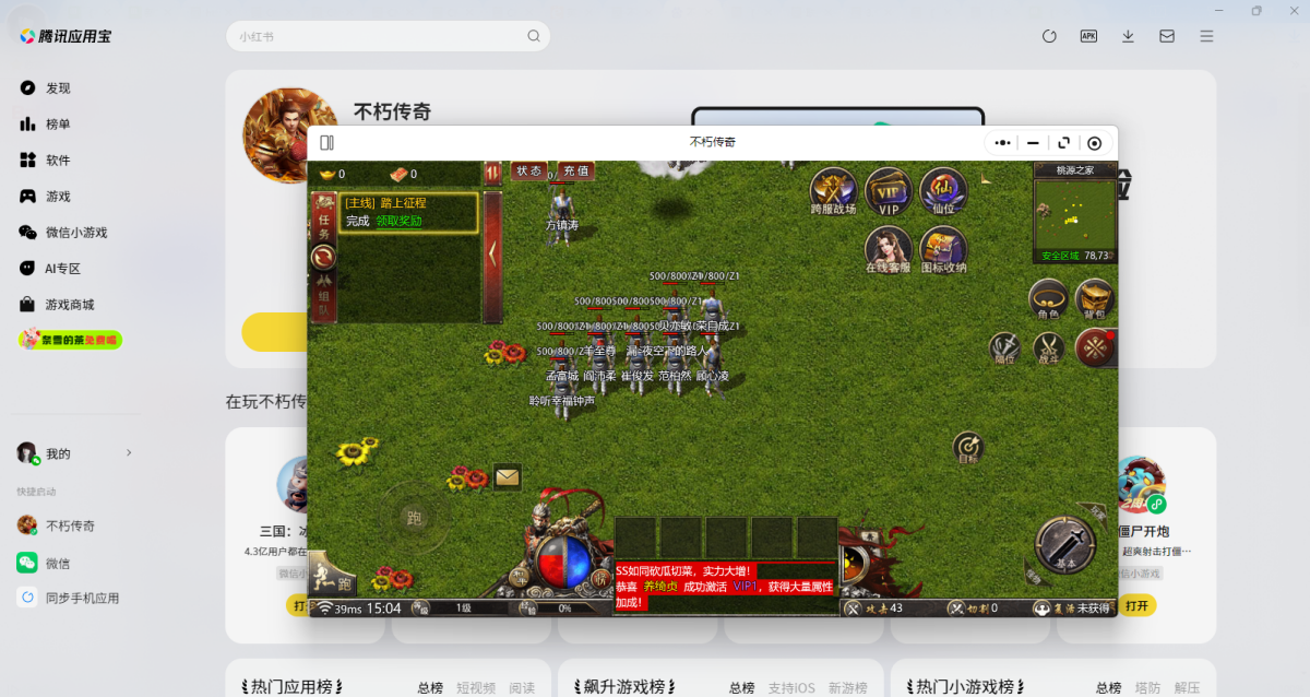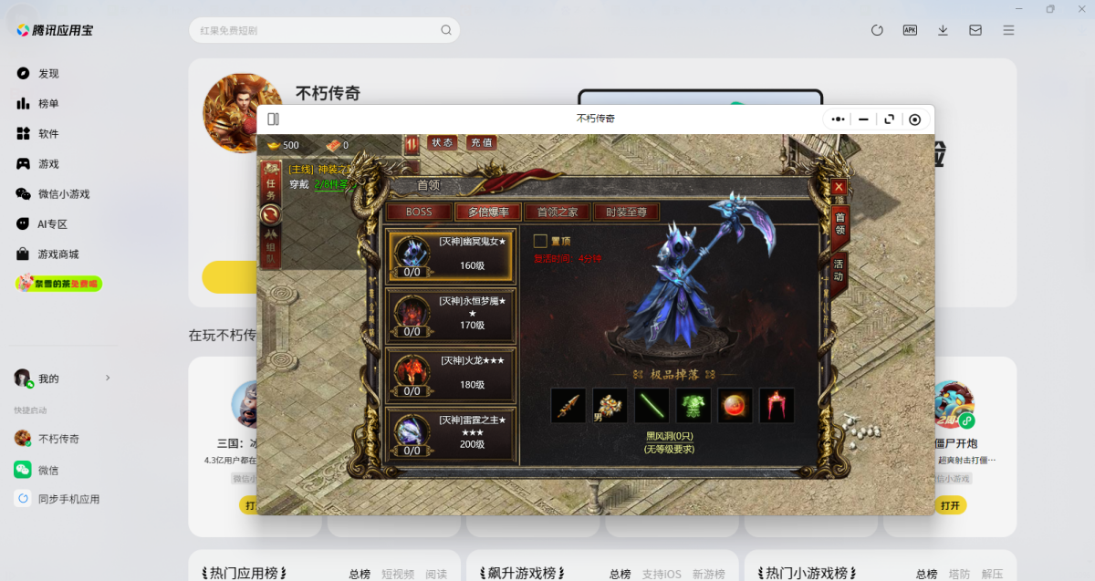 第三步:登录后直接拉起【不朽传奇】微信小游戏,就可以畅玩了