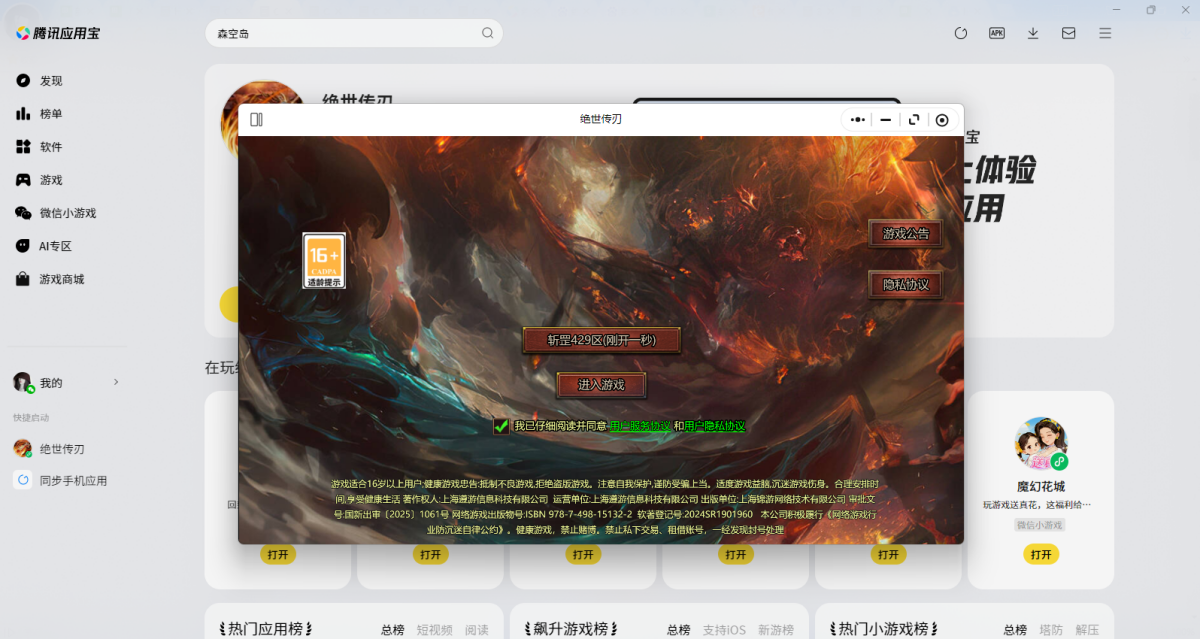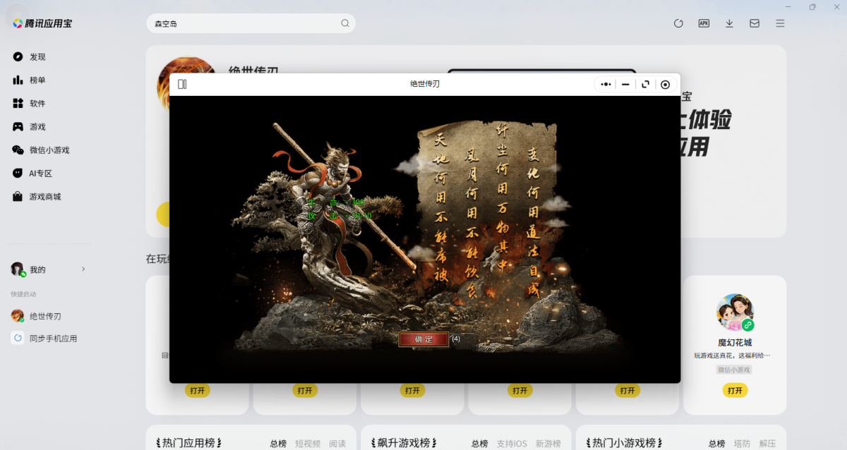 第三步:登录后直接拉起【绝世传刃】微信小游戏,就可以畅玩了