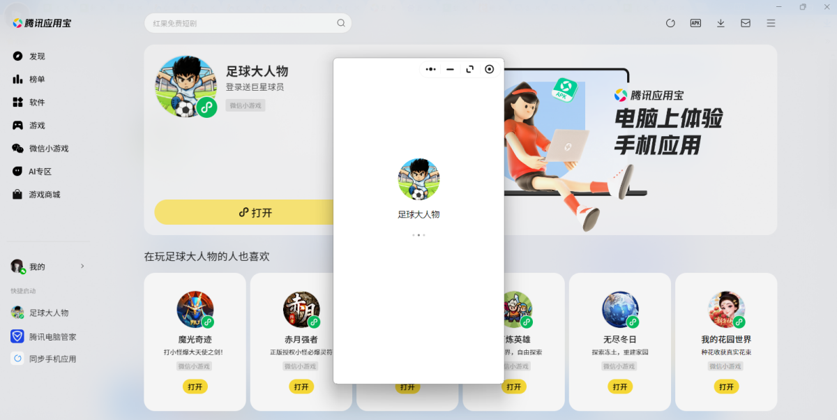 第三步:登录后直接拉起【足球大人物】微信小游戏,就可以畅玩了