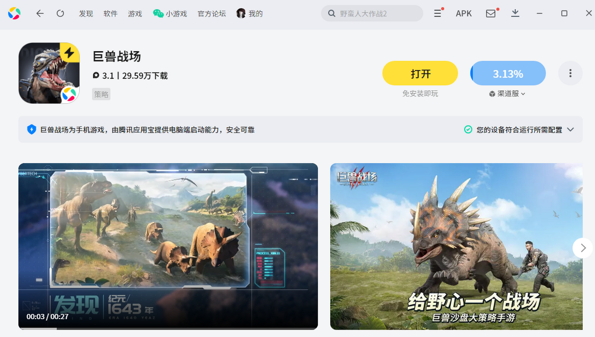 在万家下载站下载最新安装包,按提示安装应用宝(已安装会直接调用打开,未安装应用宝时,手机APP无法独立在电脑上运行),应用宝启动后会下载安装游戏,待安装完成后即可开始畅玩。