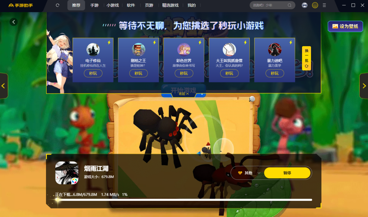 在万家下载站下载最新安装包,按提示安装360手游助手,360手游助手安装完成后,进入360手游助手,继续等待游戏安装,完成之后登录账户即可开始游戏