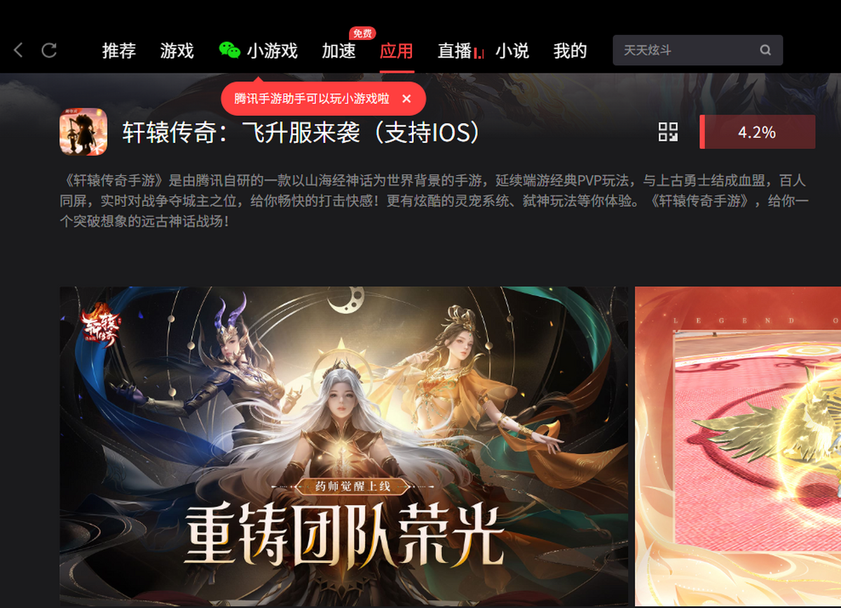 《轩辕传奇》是由腾讯自研的一款以山海经神话为世界背景的手游,延续端游经典PVP玩法,与上古勇士结成血盟,百人同屏,实时对战争夺城主之位,给你畅快的打击快感!更有炫酷的灵宠系统、弑神玩法等你体验。《轩辕传奇》,给你一个突破想象的远古神话战场!