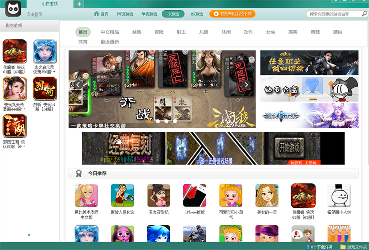 小白游戏,用户在选择好自己想玩的游戏后,点击相应按钮,只需求加载几秒到十几分钟等很短暂的时候后即可开始游戏。而且小白游戏颠覆了传统客户端游戏四部曲“下载、解压、安装、启动”的模式,完全地实现了玩家想玩游戏时候即点即玩的效果,并且提供自动更新,降低了玩家对市场上各种大型游戏的使用的门槛。