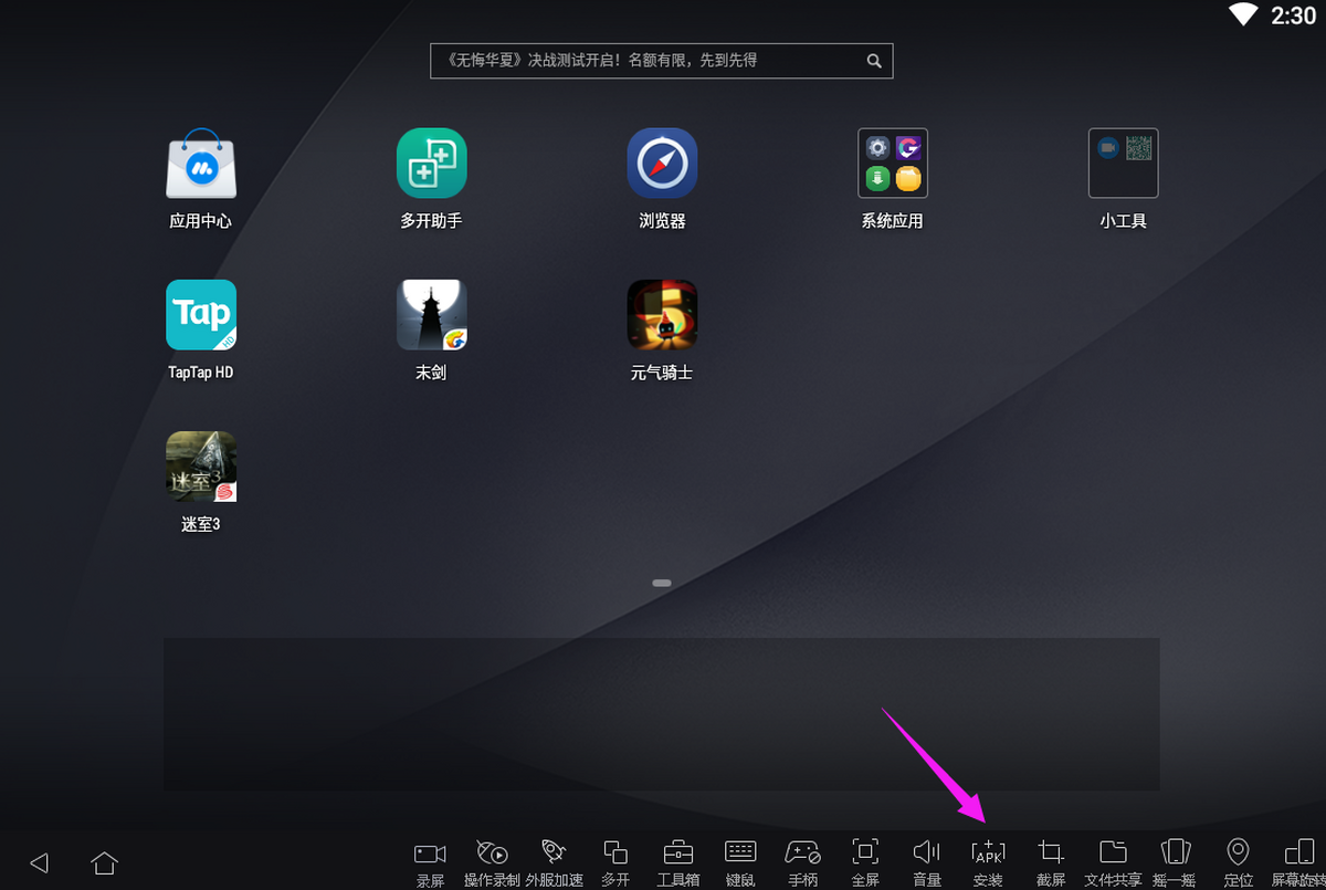 2、然后模拟器加入APK包,安装完成即可使用