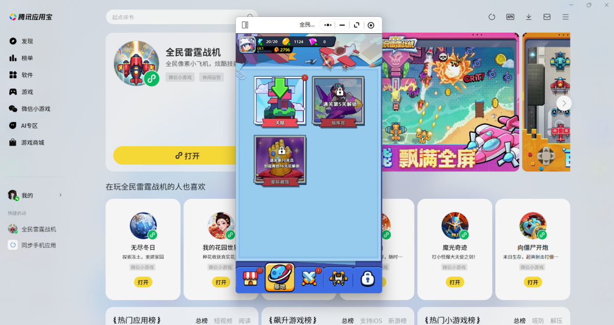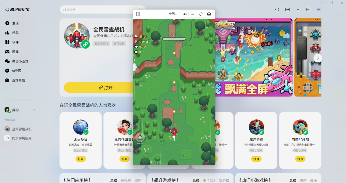 第三步:登录后直接拉起【全民雷霆战机】微信小游戏,就可以畅玩了