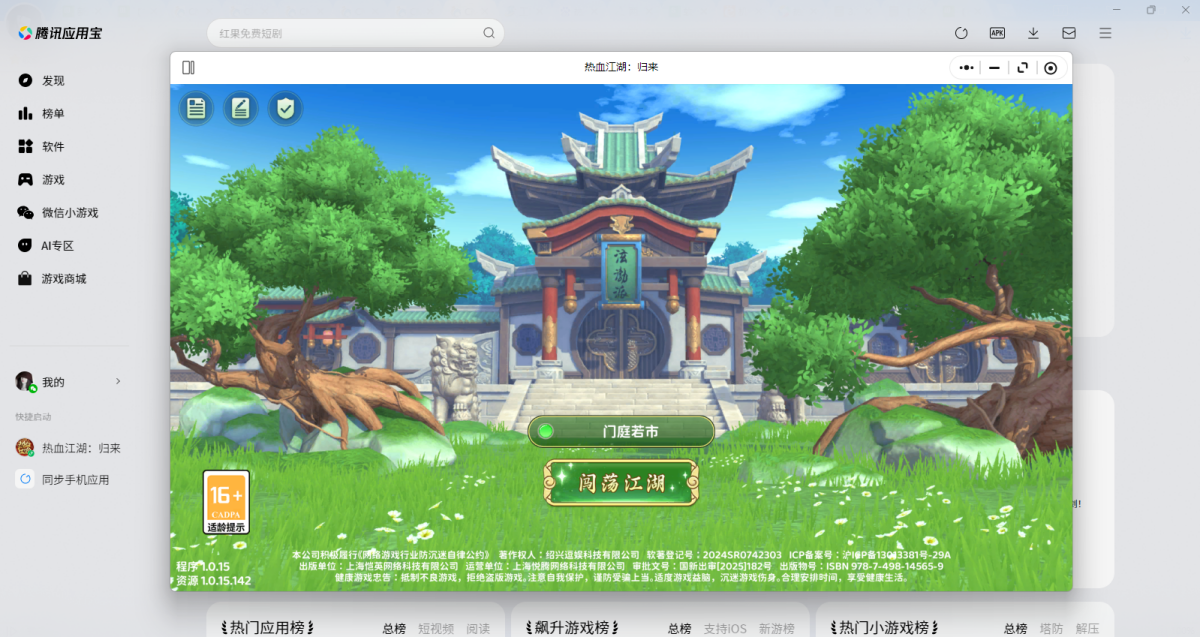 热血江湖:归来微信小游戏电脑版v1.0.15官方正式版