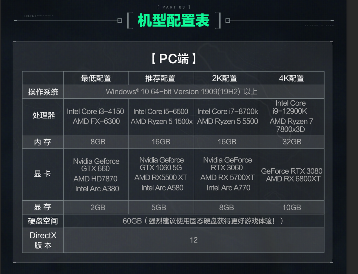 玩三角洲行动电脑配置要求