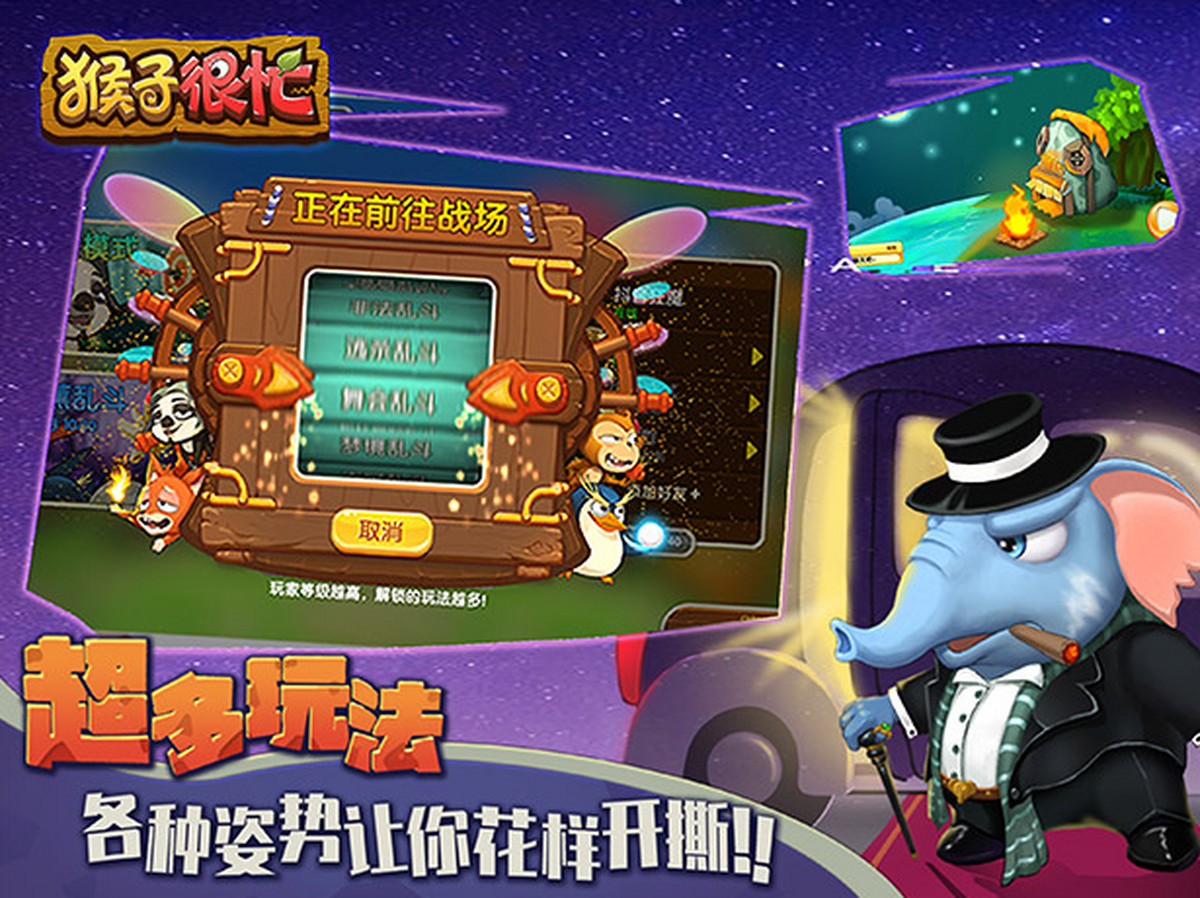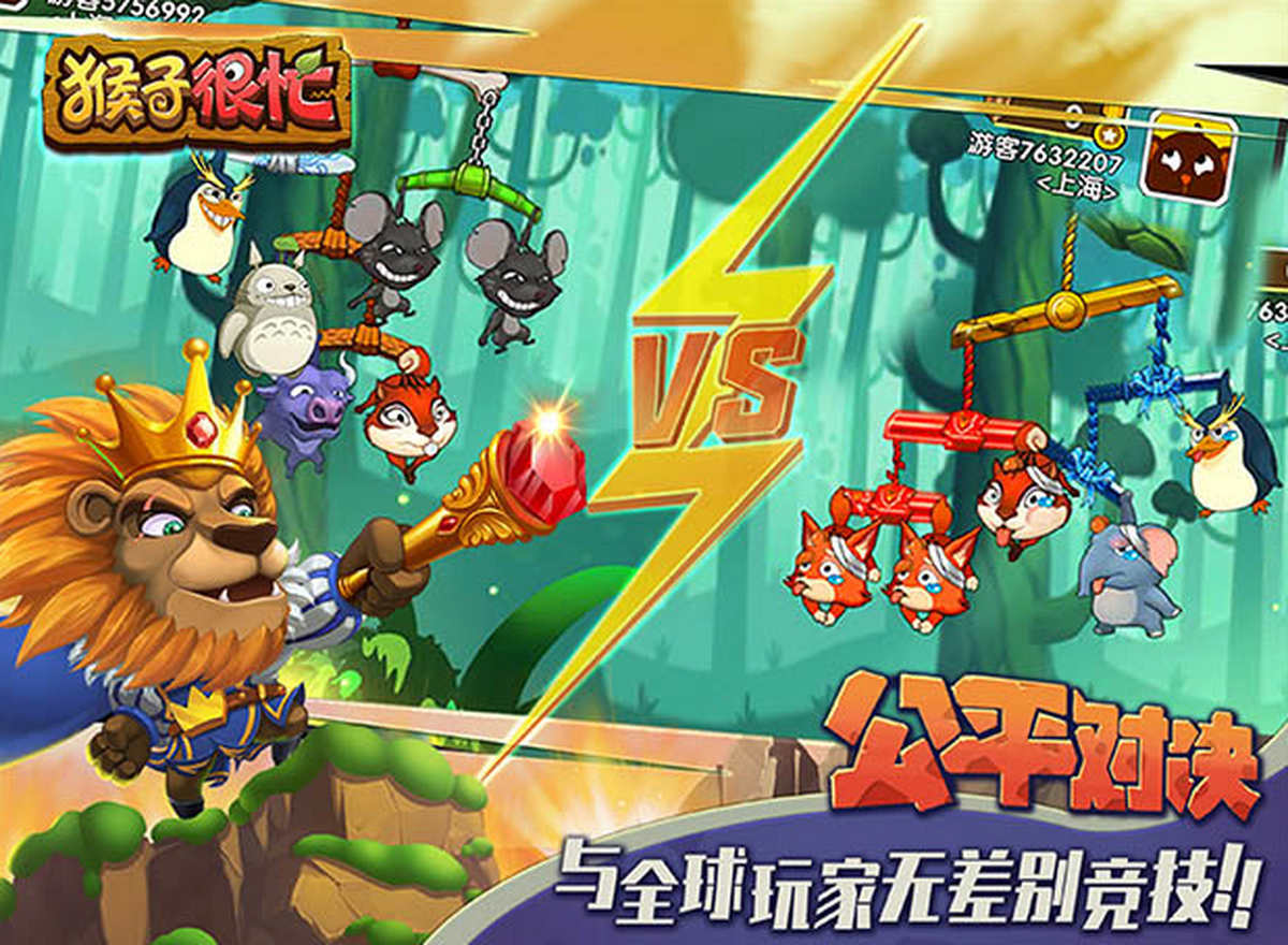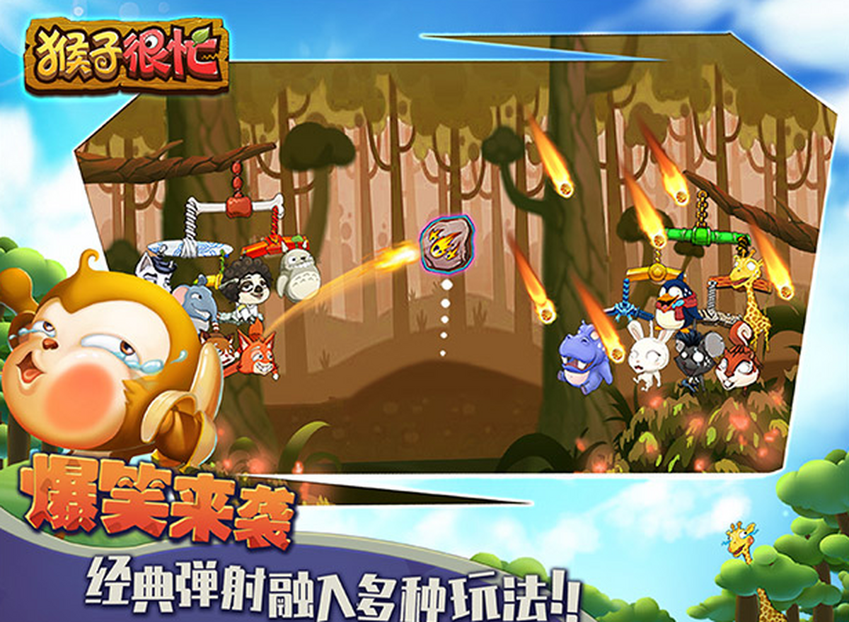 《猴子很忙》是一款2D弹射对战游戏。在这里,50多种动物,多种阵型任你搭配!每种动物都拥有自己独特的攻击手段,有一百种办法把对面打烂!策略至上的同时,打得准才是王道!排位赛、香蕉乱战、冒险模式,玩法多的让你根本停不下来!好友对决欢乐无比到底谁才是打的最准的那个?一局对战立刻揭晓!