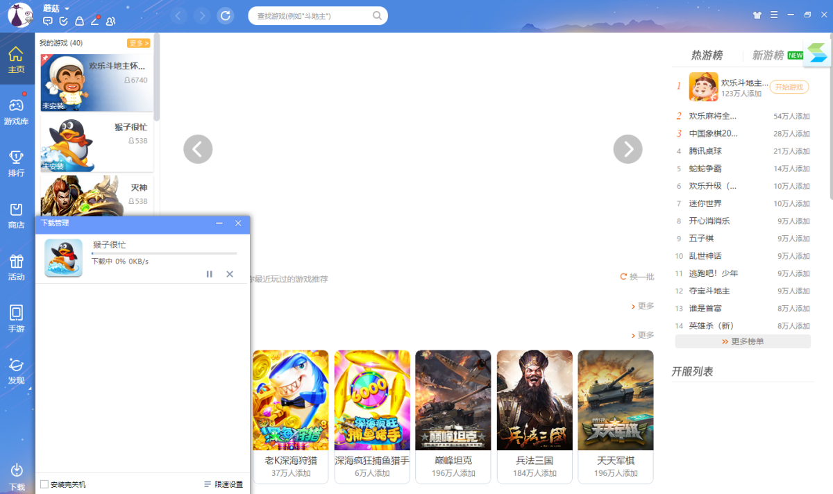 3、安装好后,进入QQ游戏,等待游戏安装完成,即可使用
