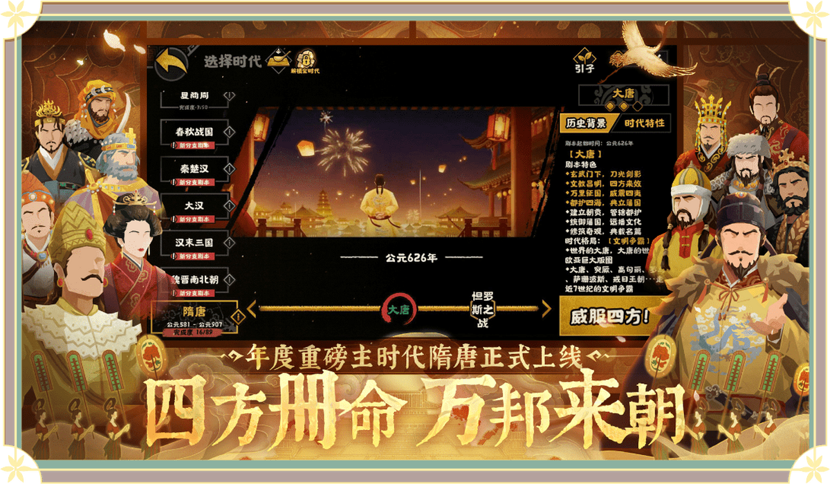玩家可根据喜好选择不同时代剧本,进入所选历史时期扮演不同势力君主,建造产业内政外交。还可携手知名历史人物制定专属政策发展国力,一统天下或达成多样结局。