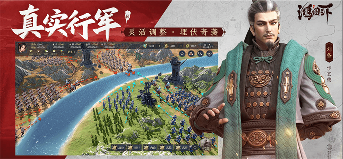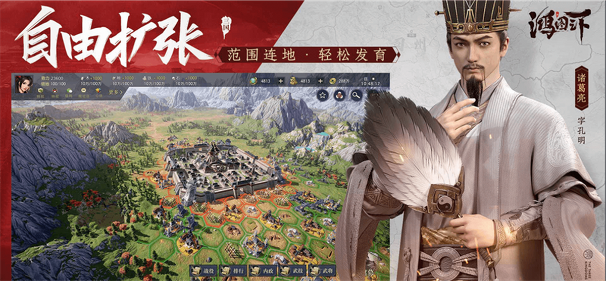 《鸿图之下》是由祖龙游戏研发,腾讯代理的旗舰级三国沙盘战略手游,借助虚幻引擎4构建了一个400万地格、真实还原地形地貌、实时模拟现实天气、昼夜四季变换的全3D宏大三国世界。