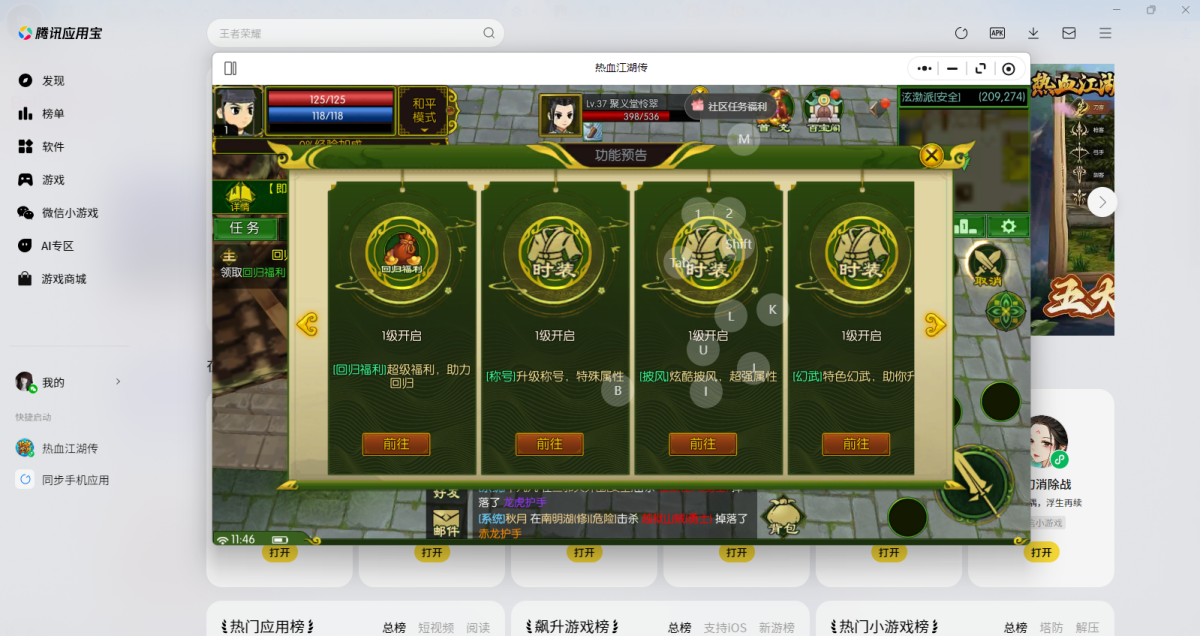 第三步:登录后直接拉起【热血江湖传】微信小游戏,就可以畅玩了
