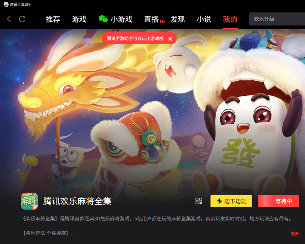 欢乐麻将是腾讯首款经典3D免费麻将游戏。5亿用户都在玩的麻将全集游戏,真人实时对战,地方玩法应有尽有。
