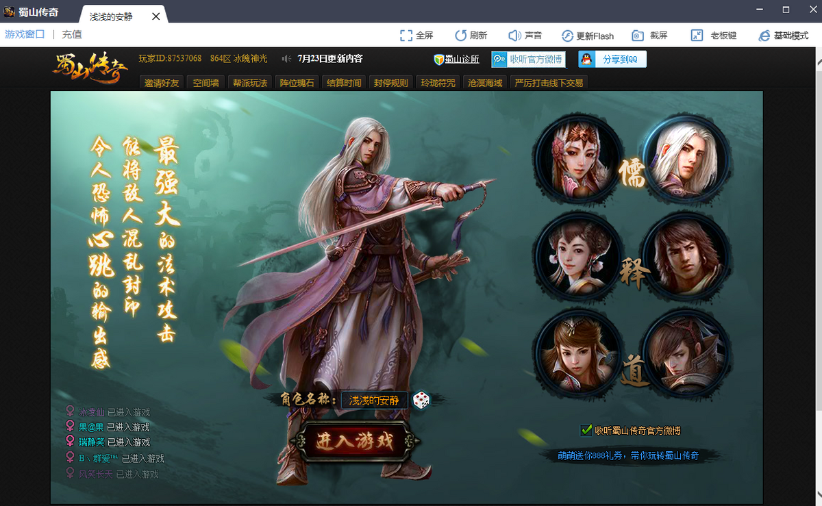 蜀山传奇是新一代回合制角色扮演类网页游戏,有特色鲜明的三大职业:儒、释、道,十二种各具特色的传奇阵法,配合上威力绝伦的各式法宝与秘籍心法,最终展现出百种策略与组合玩法助你驰骋斗剑,阵营称雄,赢取天下第一。 在游戏里,通过一步步的冒险,经历正邪之战,探索仙宫洞府,巧获上古遗珍,最终力诛群邪笑傲蜀山。游戏里竞相登场的知名人物,层出不穷的神兵法宝以及惊心动魄的正邪事件,围绕正邪之战忠实再现了还珠楼主笔下宏伟壮阔的蜀山画卷。