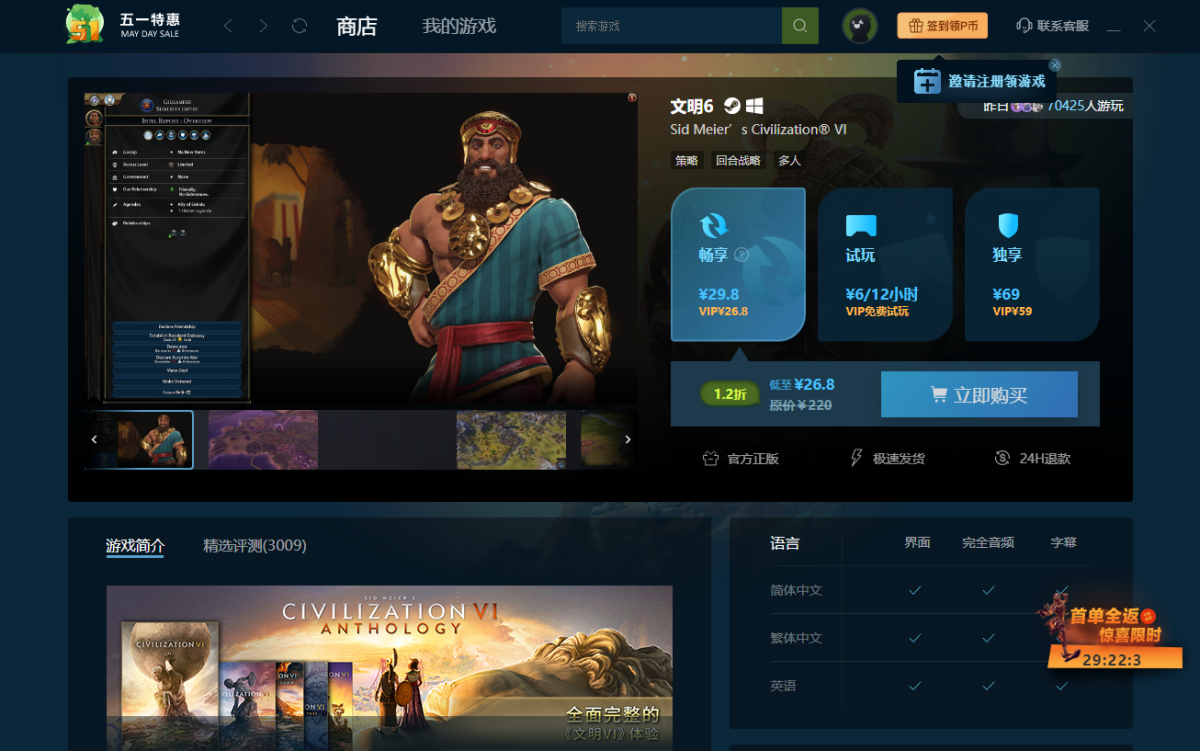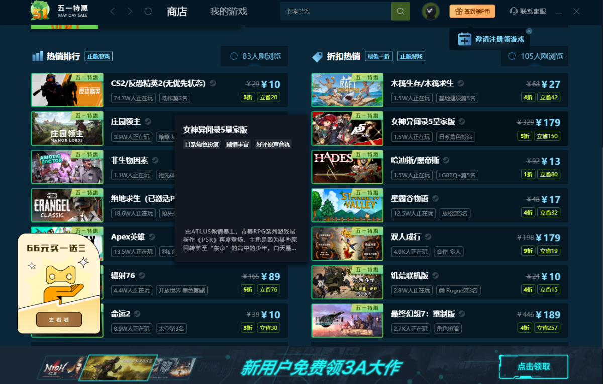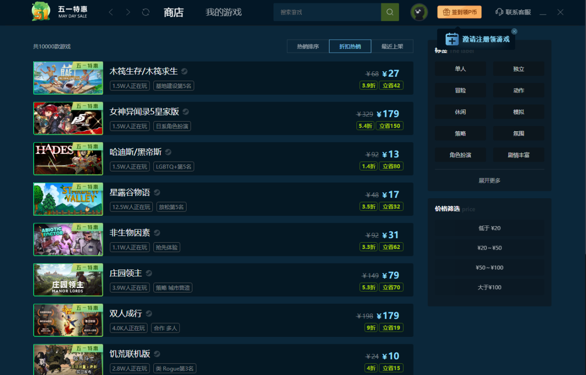 1.售价折上折 每天都玩好游戏