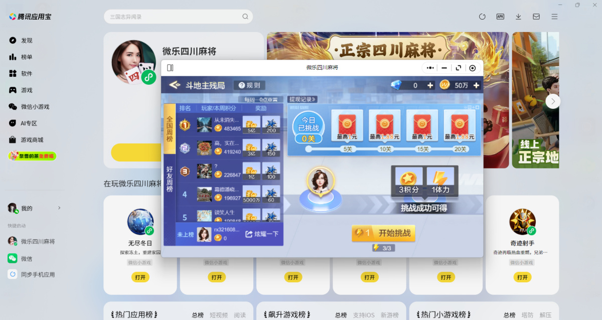 第三步:登录后直接拉起【微乐四川麻将】微信小游戏,就可以畅玩了