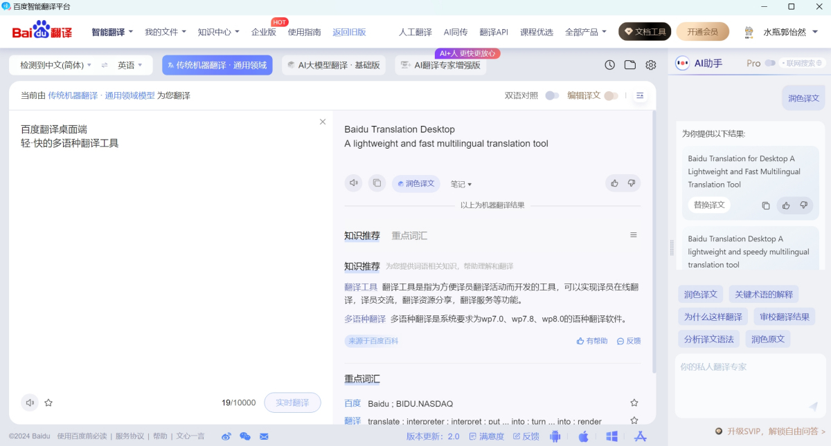 支持通用、学术、新闻等多个翻译模型,快速处理大量文档,提高翻译产能;