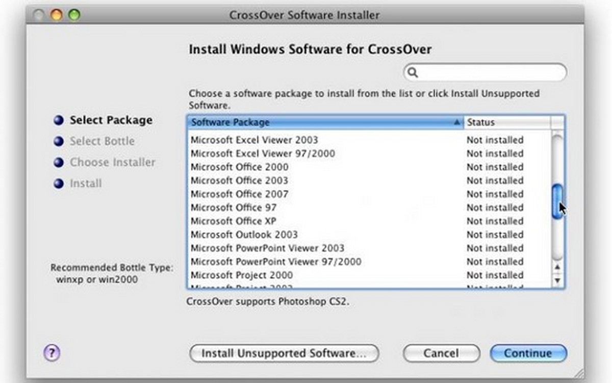 CrossOver拥有一个一键安装技术,它可以让用户在安装Windows 程序时,使用更加顺畅和便捷,也更为简单,省去了很多繁复的步骤。