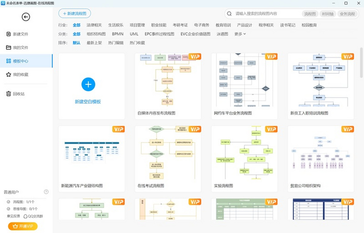 支持自定义绘制的同时迅捷画图还提供了1600+个流程图模板涵盖了各个领域,点击即可一键套用,让绘制难度大大降低。