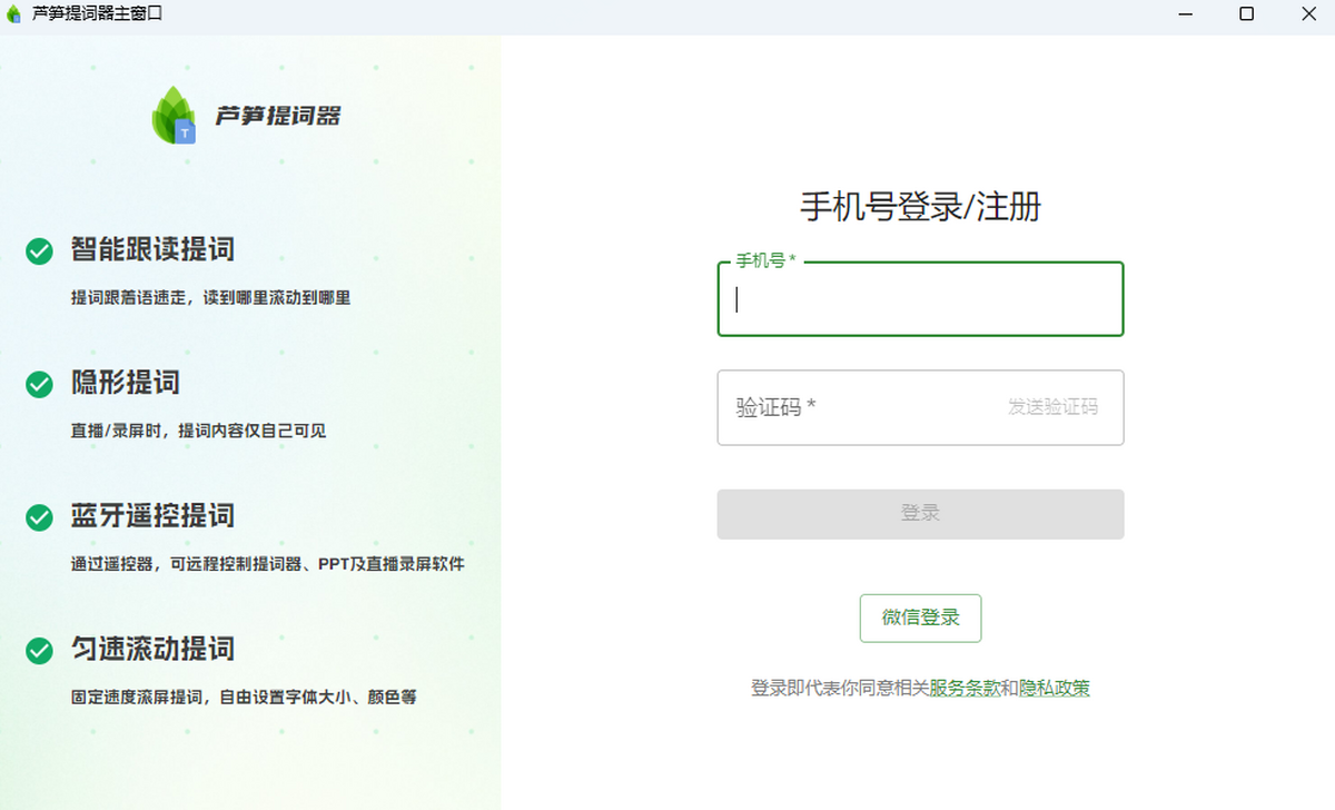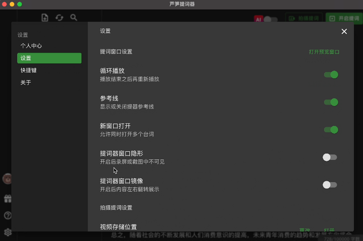 芦笋提词器是一款支持智能跟读和 AI 生成提词稿的提词器。支持隐形提词效果,录屏或分享桌面时,提词器内容仅自己可见。