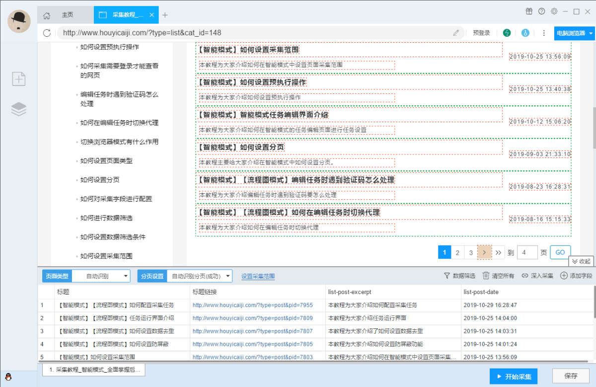 智能模式:基于人工智能算法,只需输入网址就能智能识别列表数据、表格数据和分页按钮,不需要配置任何采集规则,一键采集。