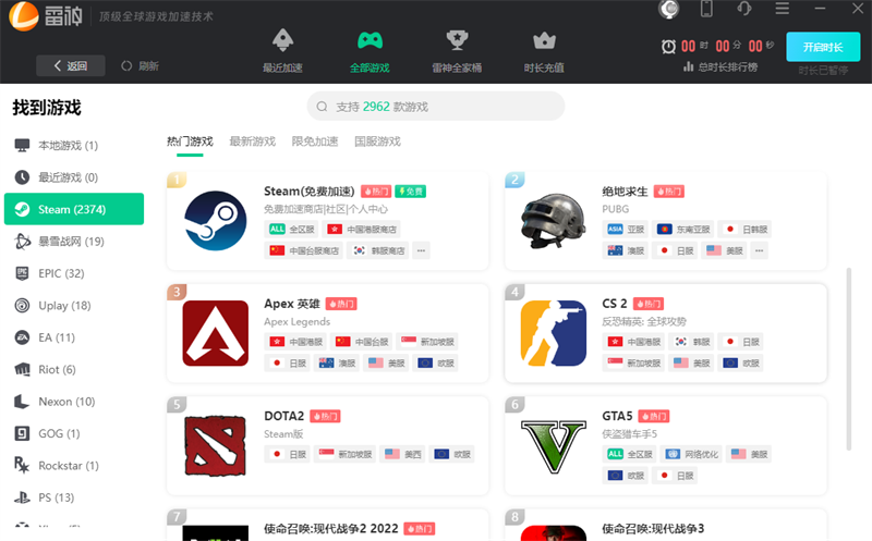 雷神全站式覆盖,完美支持加速全平台游戏( Windows端、MacOS端 、App端、NNPC 、主机 、 路由器)