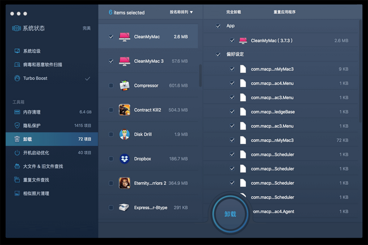 在Mac上安装了不需要的应用程序,而没有注意到或者应用程序未完全卸载这会占用大量的磁盘空间。MacBooster 将准确地定位到Mac上的每个应用程序应用程序文件夹及其隐藏部分,然后在没有剩余的情况下卸载它们。您还可以批量卸载应用程序以节省时间。
