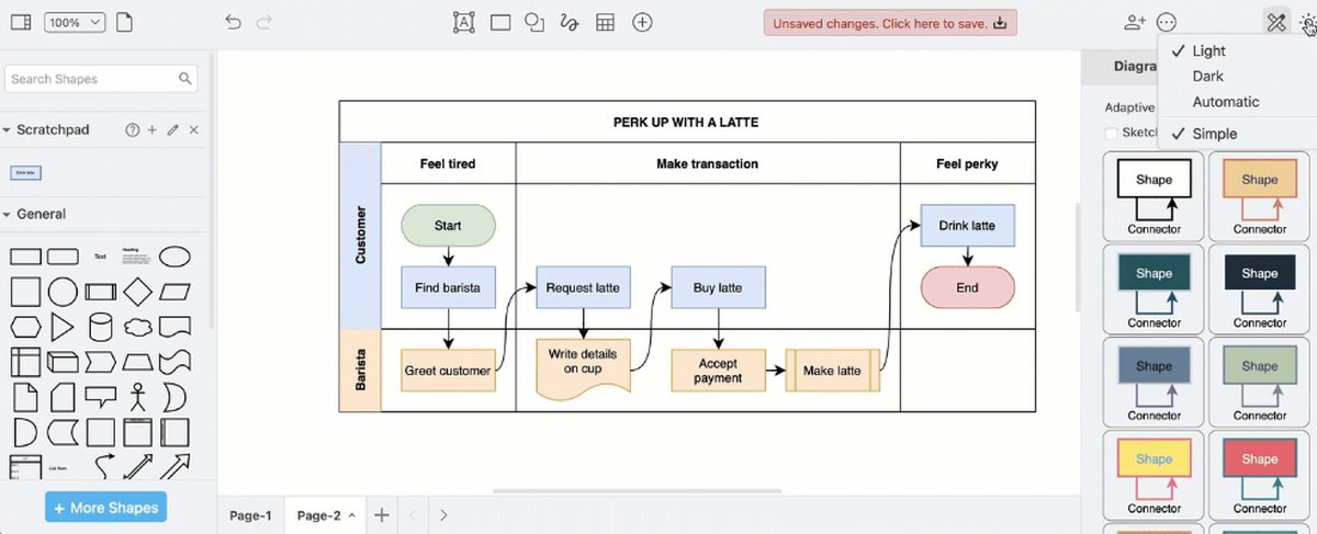 draw.io Mac版是一款流程图、结构图与电路图绘制工具,内置多种的导图模式可供选择,可以轻松的进行流程图绘制操作,支持导入自己的图标库、自动布局、数学符号、导出多种格式等功能。