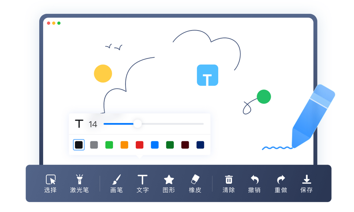 支持高清主辅流视频画面,共享会议资料,多端进行白板协作