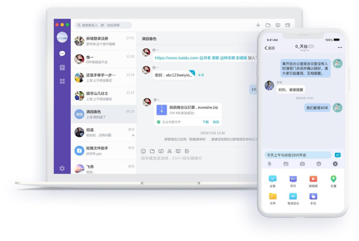 轻推是一款集即时通讯、办公协同、企业管理、连接集成、智能硬件、领域信息化解决方案等多项能力于一体的智能工作平台。手机号快速注册,即可免费使用。轻推将企业中的人、物、场景悉数连接,致力打造工作全流程链智能化生态,助力企业迈入智能工作时代。