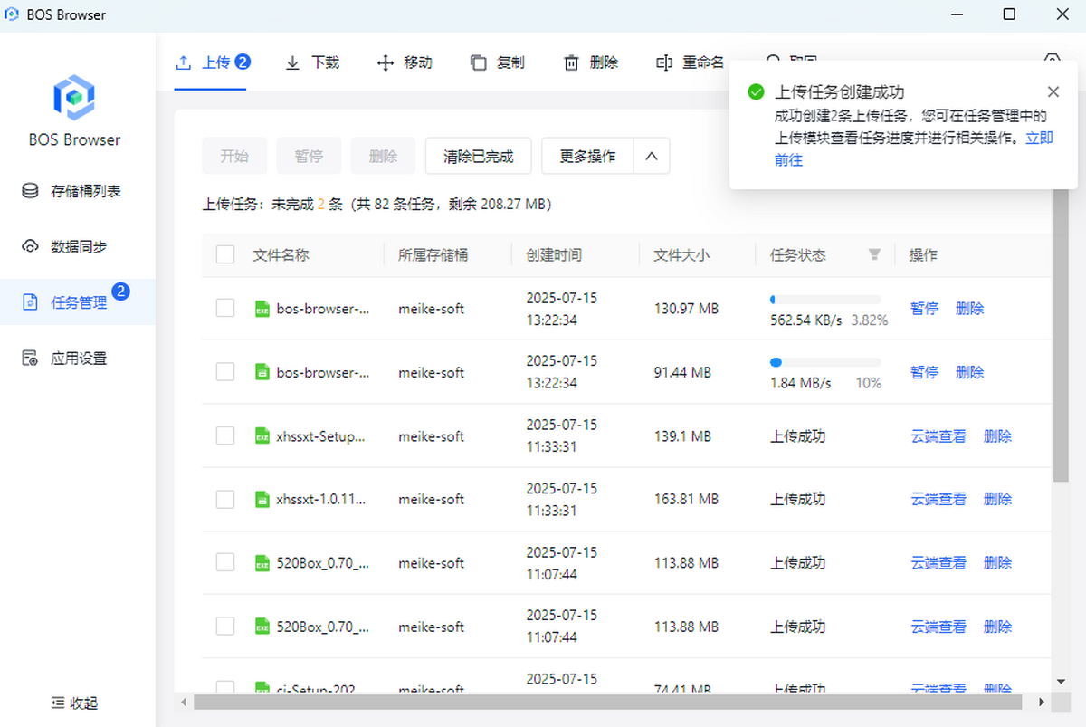 提供管理控制台、RESTful API、各种语言 SDK 等多种操作方式。同时,BOS集成CMD等十余款工具。