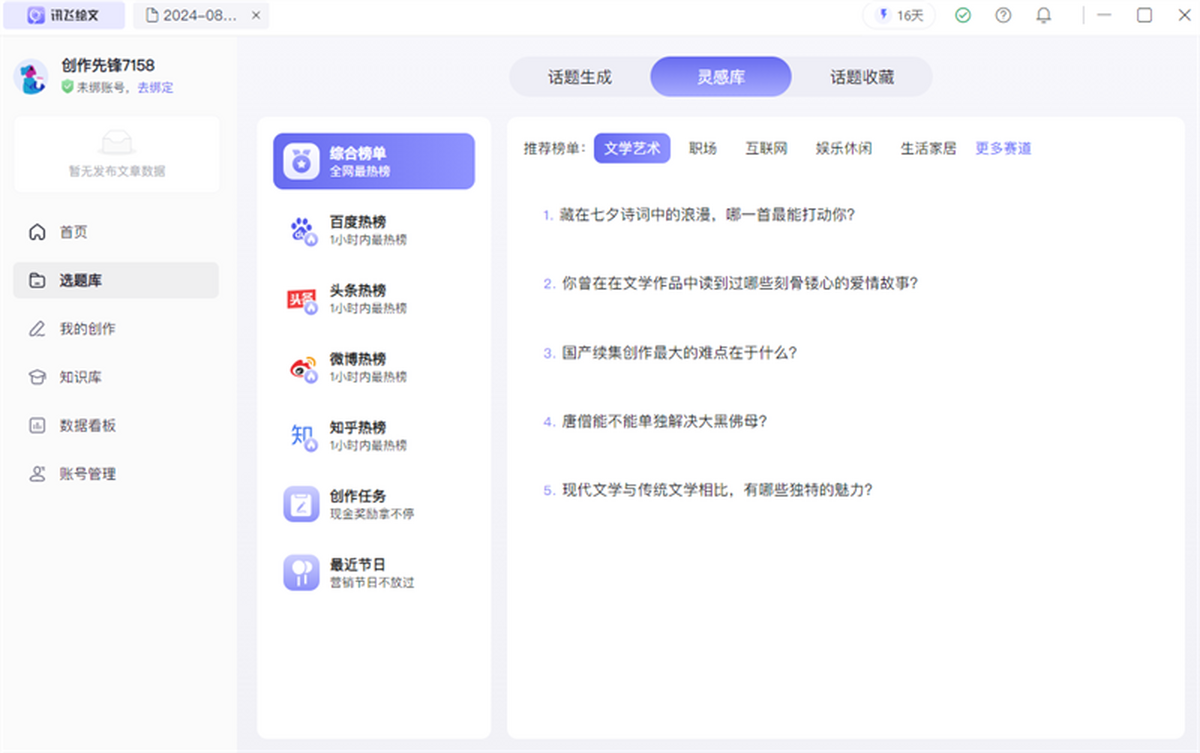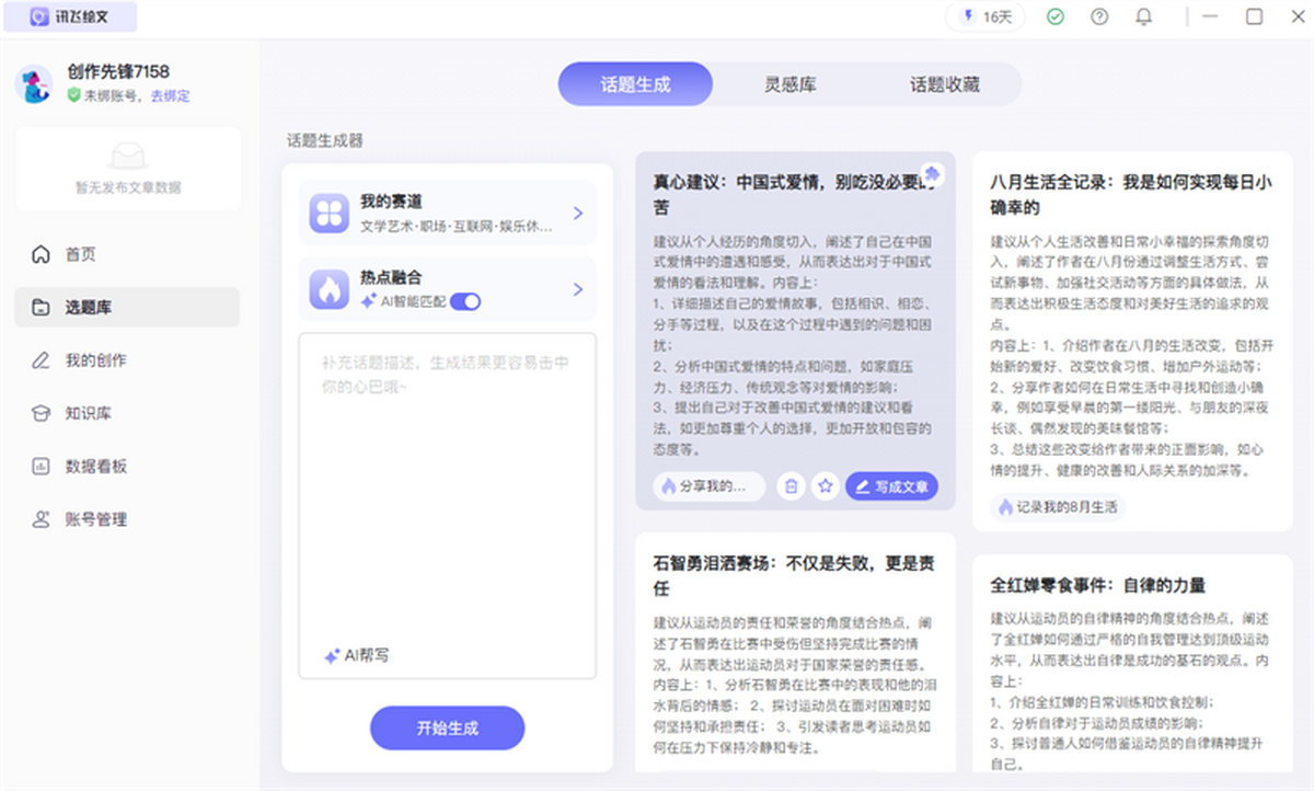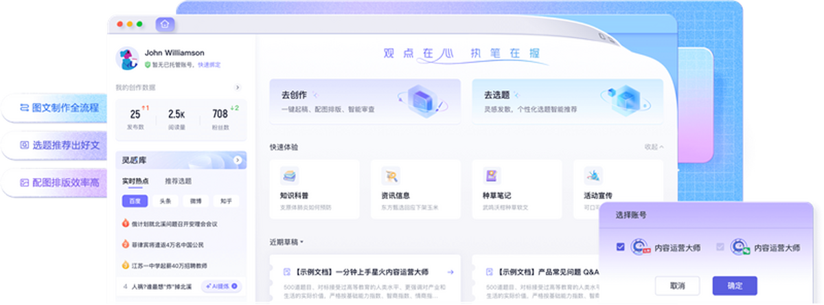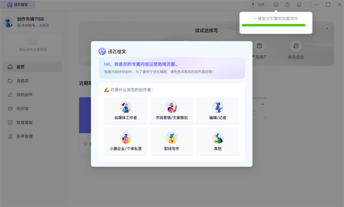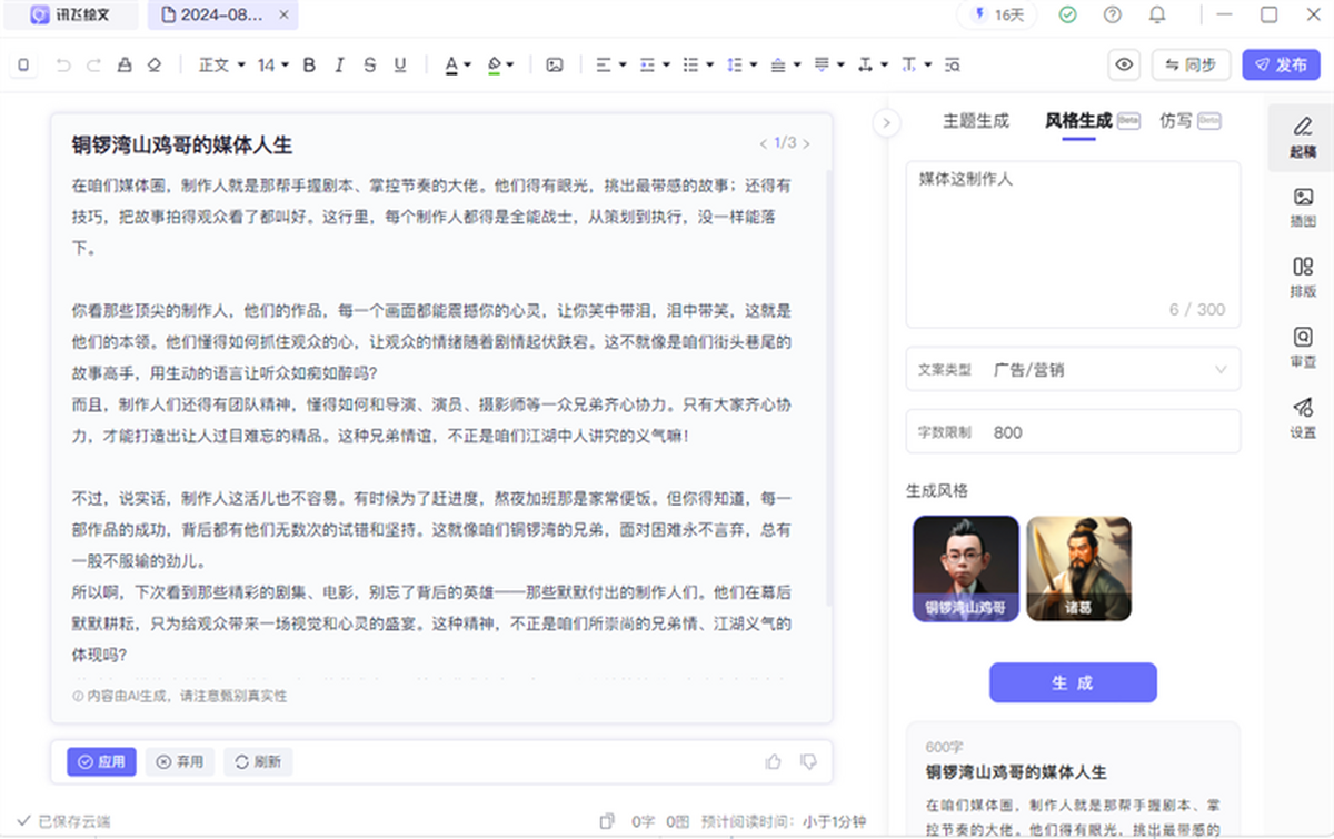 讯飞绘文Mac版,集AI写作,选题,配图,排版,润色,发布等功能为一体的智能创作平台。通用稿件30分钟生成,深度稿件效率翻番。应用于企业公众号,头条,新闻、等场景。释放创意,让内容创作更轻松!