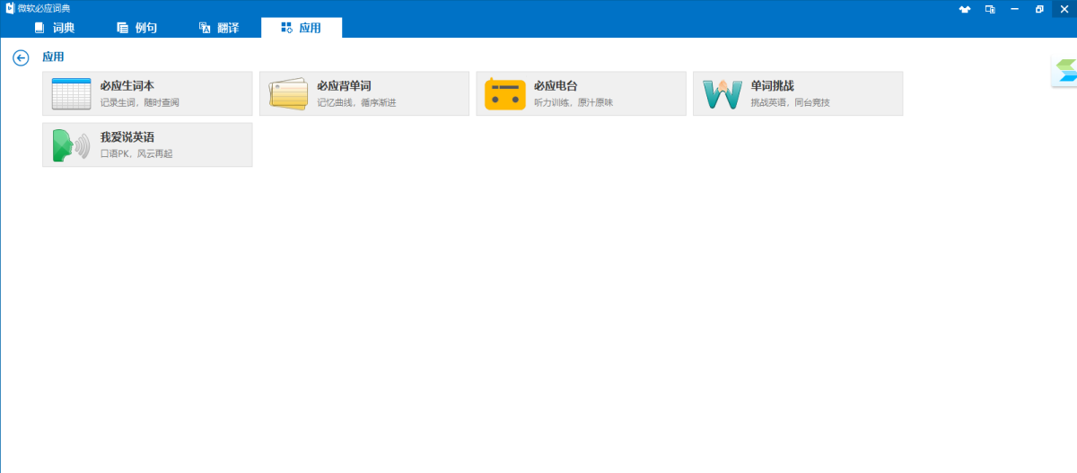 必应词典桌面版是由微软亚洲研究院研发的新一代在线词典软件。微软必应词典结合了互联网在线词典及桌面词典的优势,依托必应搜索引擎技术,及时发现并收录网络新兴词汇,让您的词典永不过时。