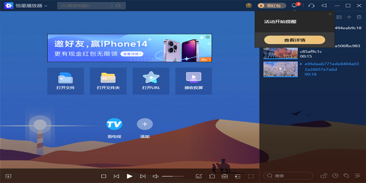 4、恒星播放器支持视屏投屏,倍速播放,后台播放等功能,还能一键截图和录制gif动图。