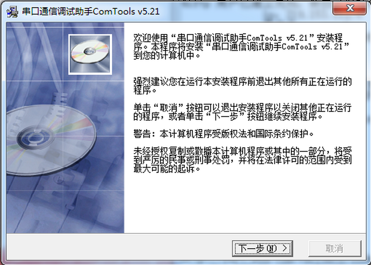 1、打开串口调试工具ComTools安装文件,弹出安装欢迎界面,点击下一步