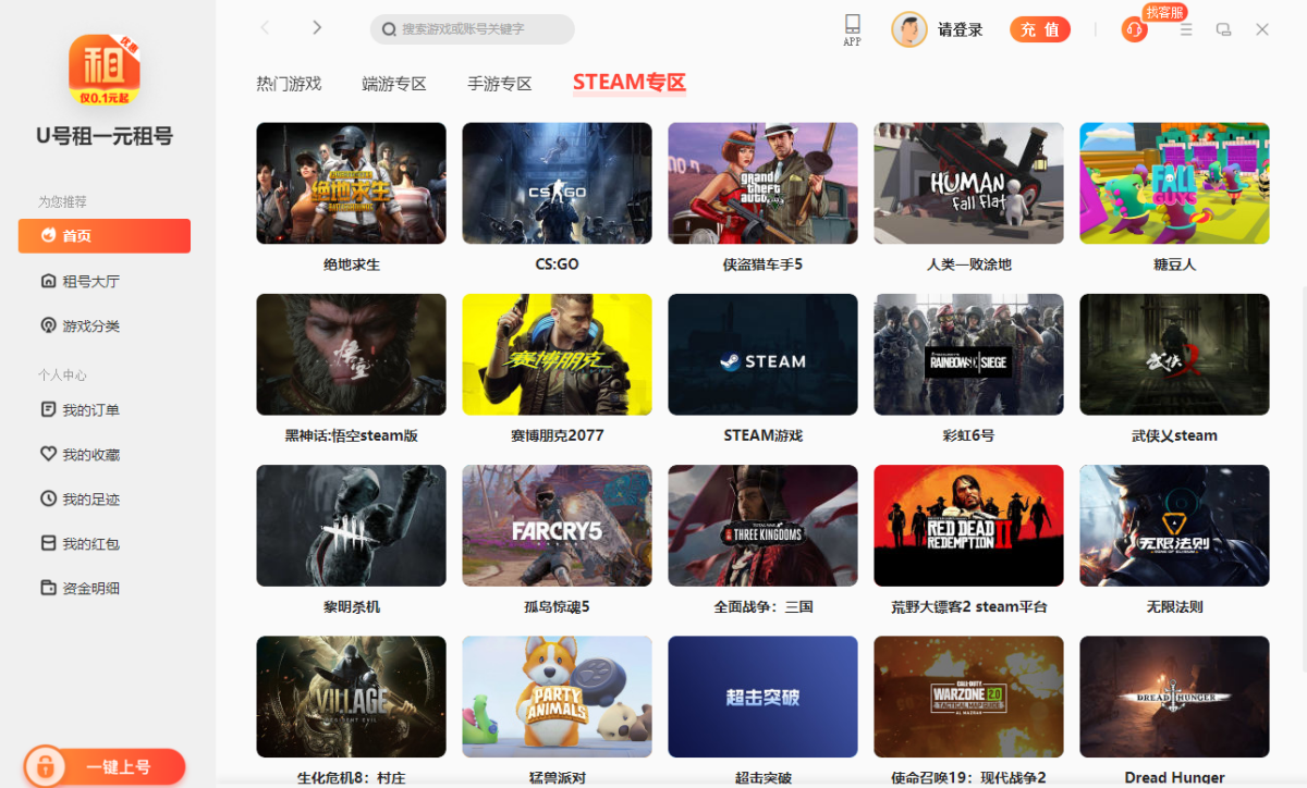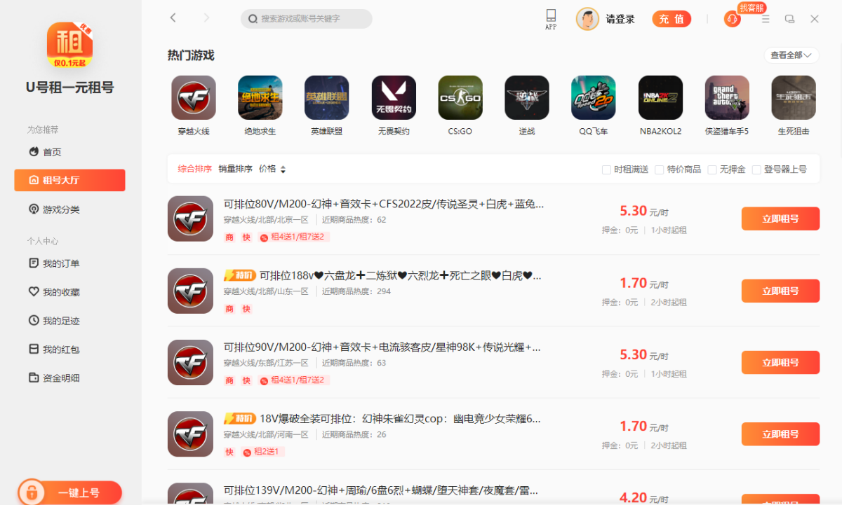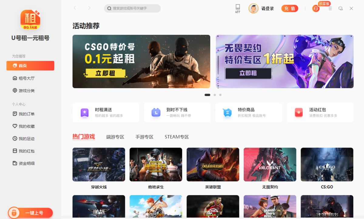U号租是一个专业的游戏租号平台,为玩家提供覆盖了端游、手游等高级账号。有了U号租,您可以轻松实现:王者荣耀租号、和平精英租号、CF租号、英雄联盟LOL租号和绝地求生租号等,高端帐号即时体验!现在下单,单单都返奖励金。邀请新人更有额外奖励。