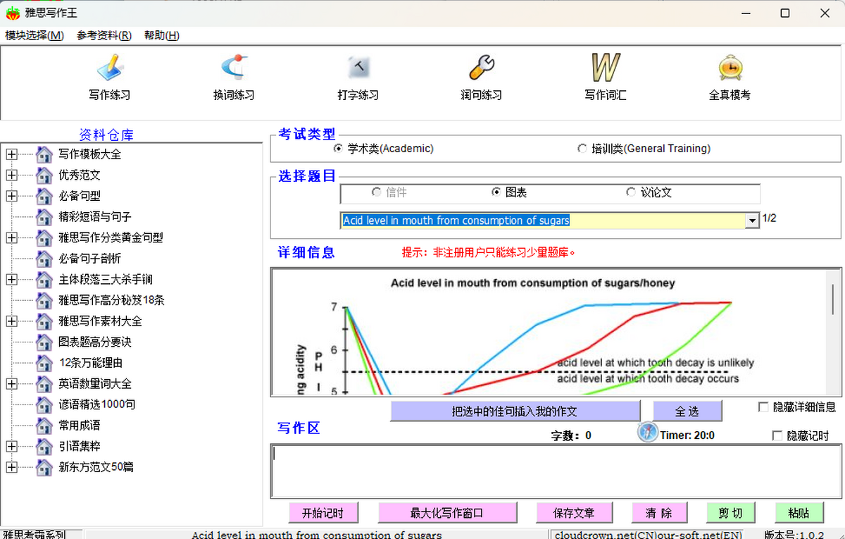 全球第一家专门为提高雅思机考写作速度而配备的强大打字训练功能。包含指法练习(小写练习、大写练习、数字练习、标点练习)、王玉梅单词打字练习、满分范文打字练习、小鸟啄食游戏。