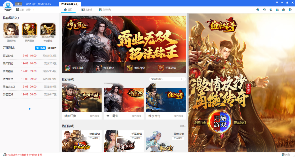 2345游戏大厅是2345游戏中心为广大玩家倾情制作的一款集成国内较新、较火的游戏软件,它不仅有大量热门好玩的页游,而且集微端和官网于一体。在《2345游戏大厅》里,您可以同时玩游戏和浏览资讯攻略页面,更能直接领取礼包特权,《2345游戏大厅》将给您带来更流畅的游戏体验。