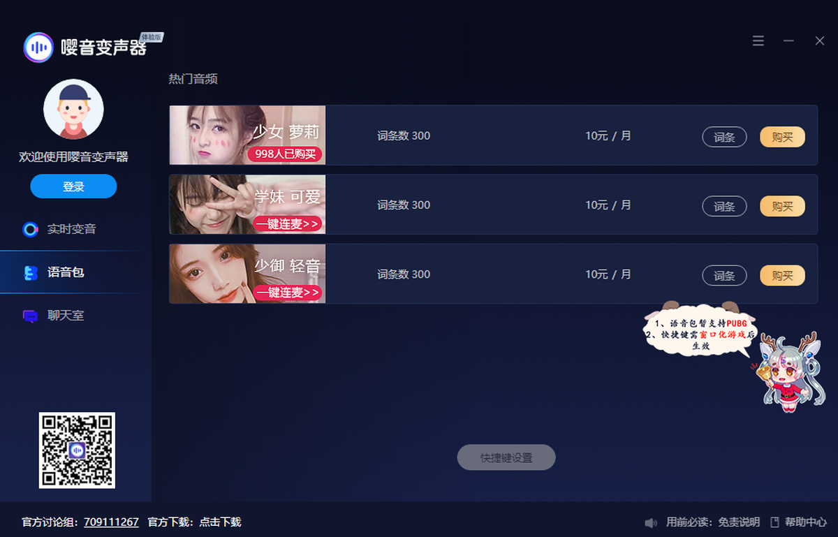 完美支持各类游戏,语音,直播平台,CF,LOL,吃鸡,微信实时变音,多种声卡,模仿,改变,一键下载,等你体验。