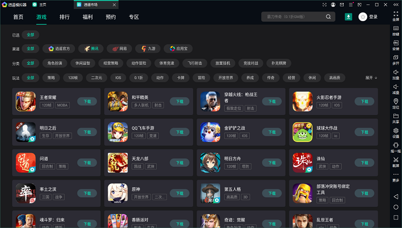 《逍遥模拟器》是电脑上玩手游测试性能超好的安卓模拟器,运行速度快、流畅不卡顿,支持2K极清画质,支持120帧率,较同类安卓模拟器产品更节省电脑资源,长时间玩更稳定,是非常多手游主播直播的软件。逍遥模拟器是电脑上支持多开更便捷、更高效、更省资源的安卓模拟器产品,是全球安卓模拟器一键无限多开的创始者。逍遥模拟器多开器支持批量管理、群控操作、一键刷机(一键更新所有模拟器的信息)、模拟器分组、模拟器搜索等多开管理功能,多开效率成倍提升,在同等电脑环境下,逍遥模拟器多开数量超多,是目前电脑上玩手游用户评价超好的安卓模拟器软件。